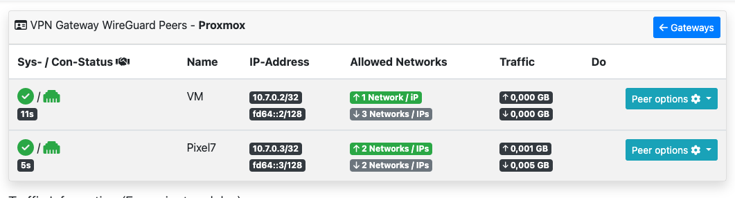 mit Hilfe der Anleitung habe ich mir einen Cloud Router und zwei Peers eingerichtet. Der Erste soll die Fritzbox darstellen und wird in meinem Fall eine VM in meiner Proxmox Umgebung. Der Zweite wird mein Smartphone mit Wireguard drauf.