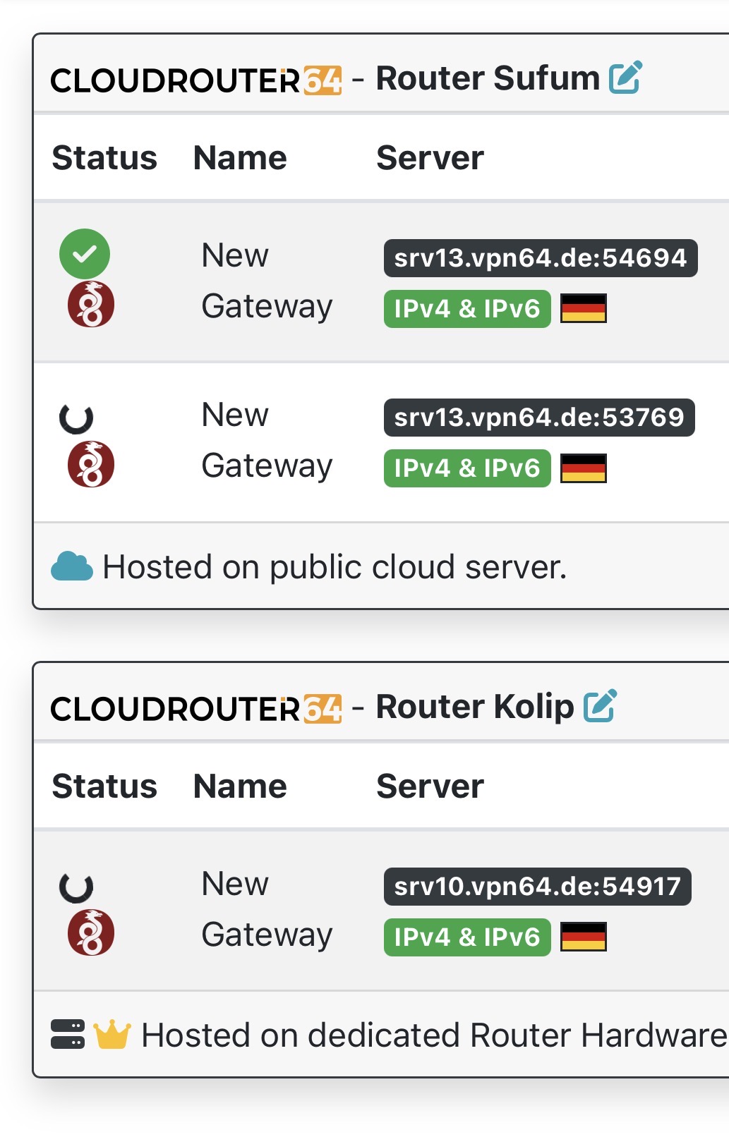 Das muss auf jeden Fall ein Bug sein.. vor ein paar Tagen konnte ich noch neue Gateways erstellen und die gingen innerhalb von wenigen Sekunden online. Ich habe dazu mal eine Support Mail an Dennis geschrieben.