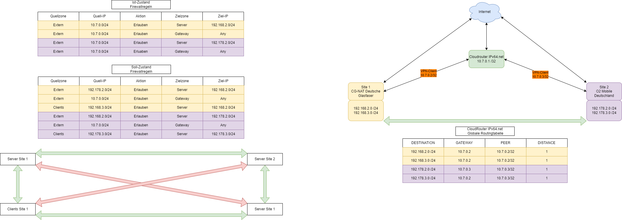 Hintergrund: Auf beiden Seiten stehen Server und Clients. Allerdings sollen halt nicht alle miteinander sprechen sondern eben nur bestimmte Server mit Clients oder bestimmte Server mit bestimmten Servern.
