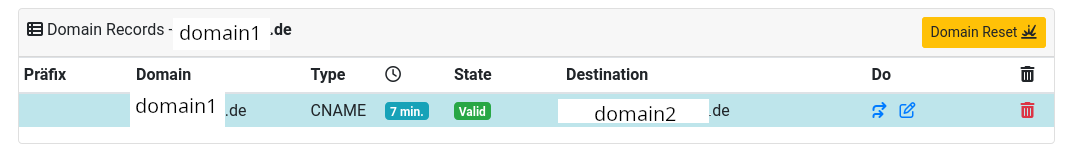 Danke. Ich vermute mal eher, dass Domain1.de auf ipv64.net nicht existiert und deshalb der CNAME-Eintrag scheitert. Irgendwer muss ja auch Domain1.de hosten.