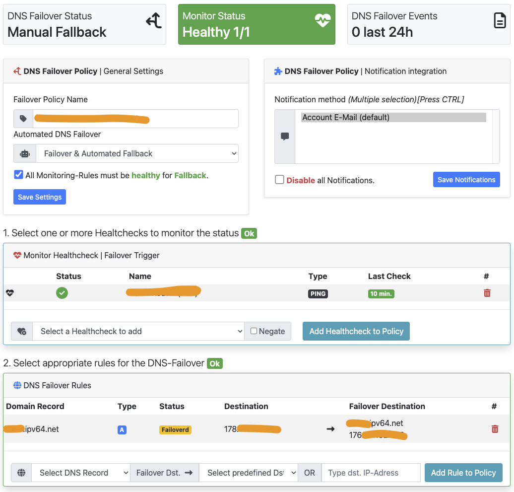 Seit gestern Abend stand meine Failover-Policy auf „failovered“, obwohl die Regel wieder grün ist. Dann habe ich manuellen Fallback ausgelöst und seitdem steht „Manual fallback initiated“, es passiert aber nichts und in der Policy kann ich nichts ändern, da Status weiterhin „failovered“ ist. Irgendwas scheint da zu hängen…