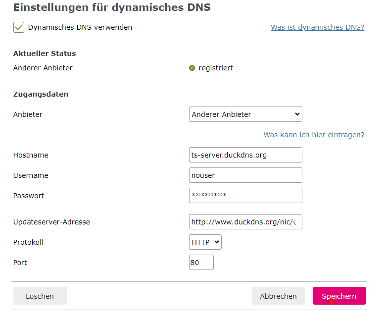 Als Adresse geht da https://www.duckdns.org/ oder auch https://www.duckdns.org/nic/update.