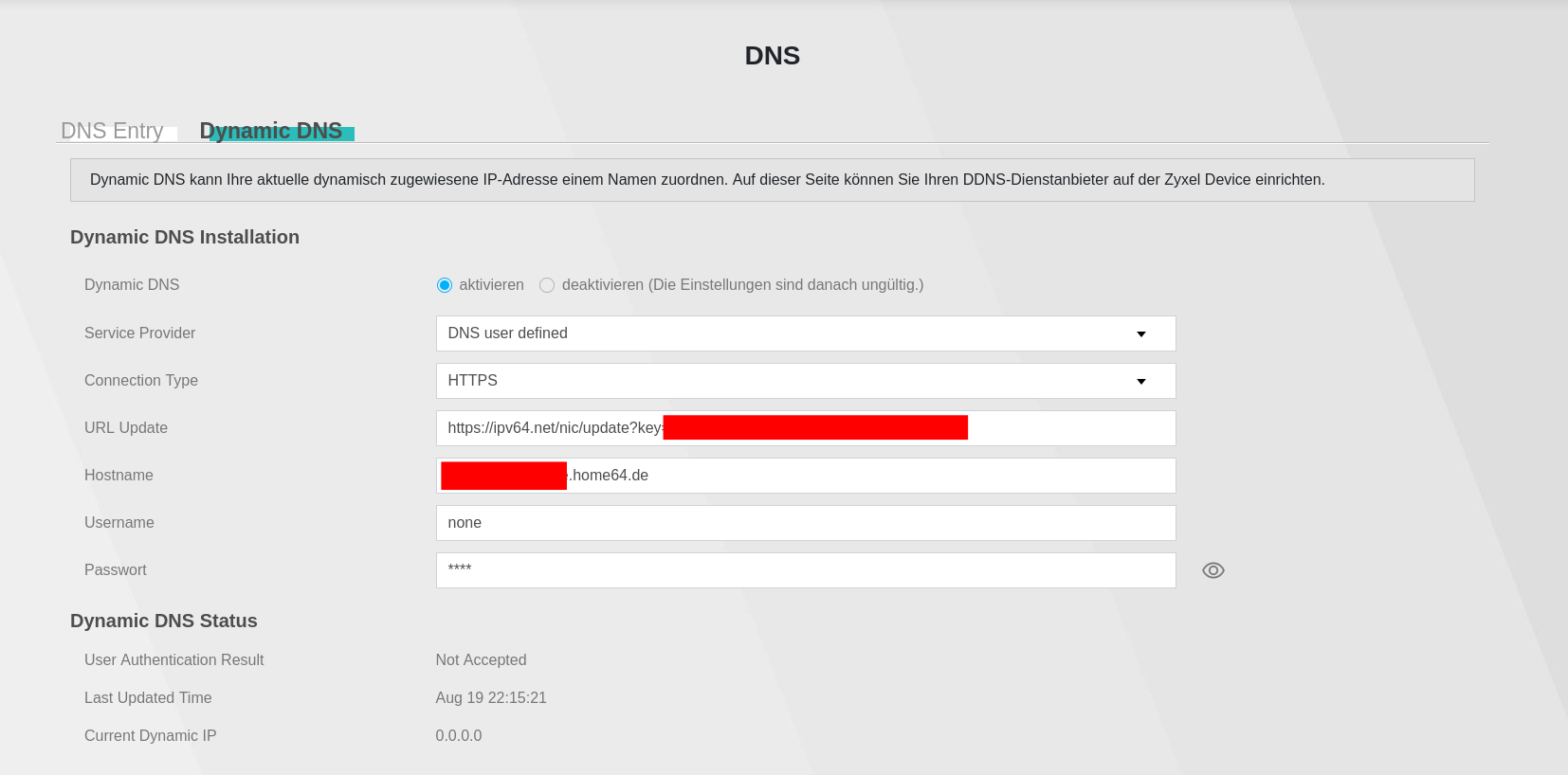 Leider gibt es auf der Seite IPV64.net keinen beschrieb dazu wie ich meine DynDNS bei diesem eintrage.