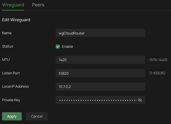 - Tab Wireguard > Create New Wireguard