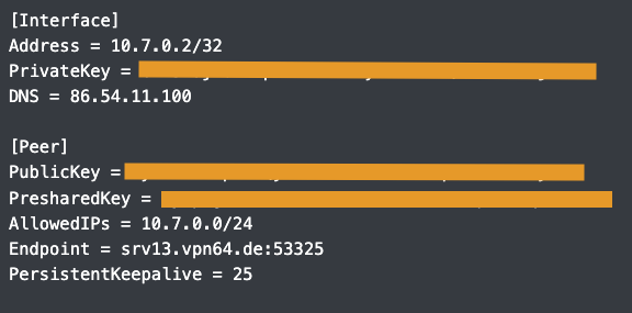 Hier dann analog die Werte aus dem Abschnitt [Peer] übernehmen.