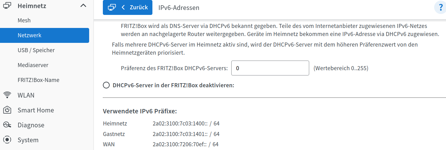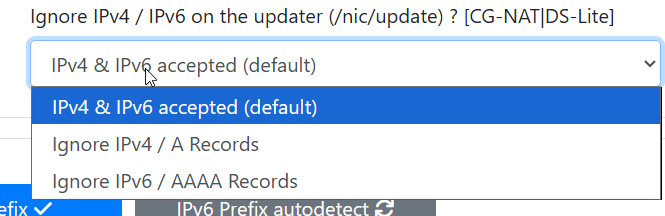 Ich trage also den Host-Teil der IPv6 der NAS ein und mit dem zuvor gespeicherten IPv6-Prefix ergibt sich dann das Bild mit (Prefix)Host. Lasse ich jetzt aber die Update-URL so, wie sie oben in der Anleitung beschrieben ist, erhalte ich nach dem reconnect genau das Problem: Der AAAA-Record wird mit der vollständigen IPv6 der Fritte überschrieben und es wird eben nicht NUR der Prefix aktualisiert.