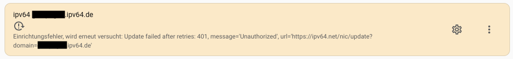 Ich habe in Homeassistant die entsprechende Integration via HACS heruntergeladen und ein entsprechendes Gerät mit den Einträgen für die Domain, den Account Update Token und den API-Schlüssel hinzugefügt. Wenn ich dann auf “weiter” klicke, kommt die Meldung, dass die entsprechende Konfiguration erstellt wurde. Danach erscheint jedoch folgende Fehlermeldung: