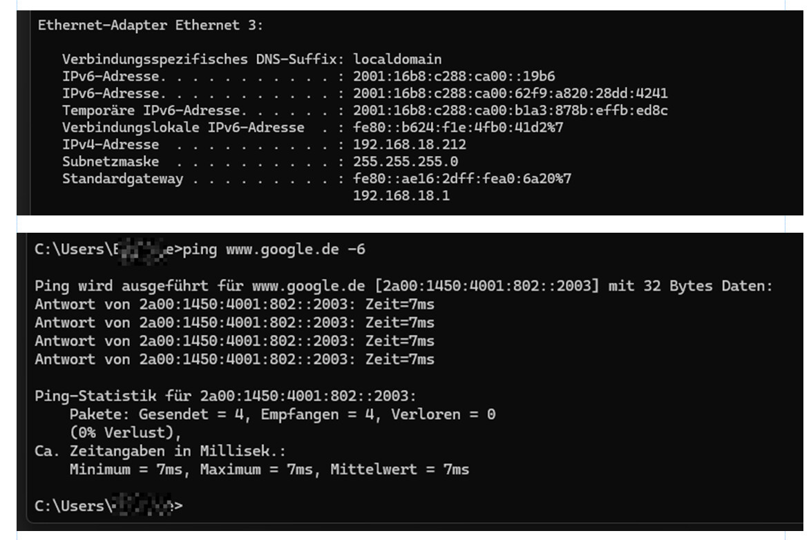 Wisst ihr was ? Der Anschluss ist mit Dual Stack geschaltet worden.