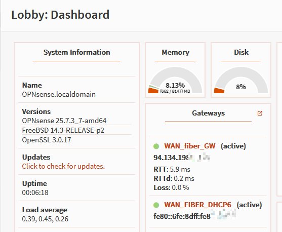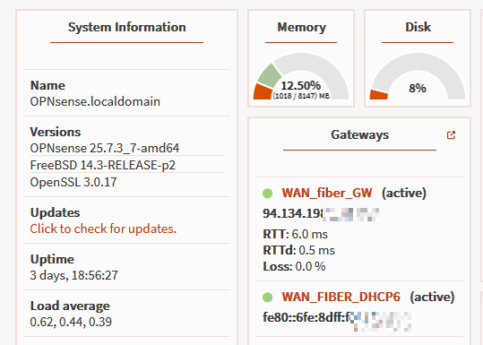 Die OPNsense läuft seit ca. vier Jahren, bis 08/2025 an einem Vodafone Internet Kabelanschluss mit Dual Stack. IPv4 und IPv6 wurden wie erwartet von der OPNsense angezeigt und ich konnte diese nutzen. Mit Zugriff von außen, dem HAproxy, der die https Verbindungen gemanaged hat, ein paar Portweiterleitungen auf meine Synology, etc.