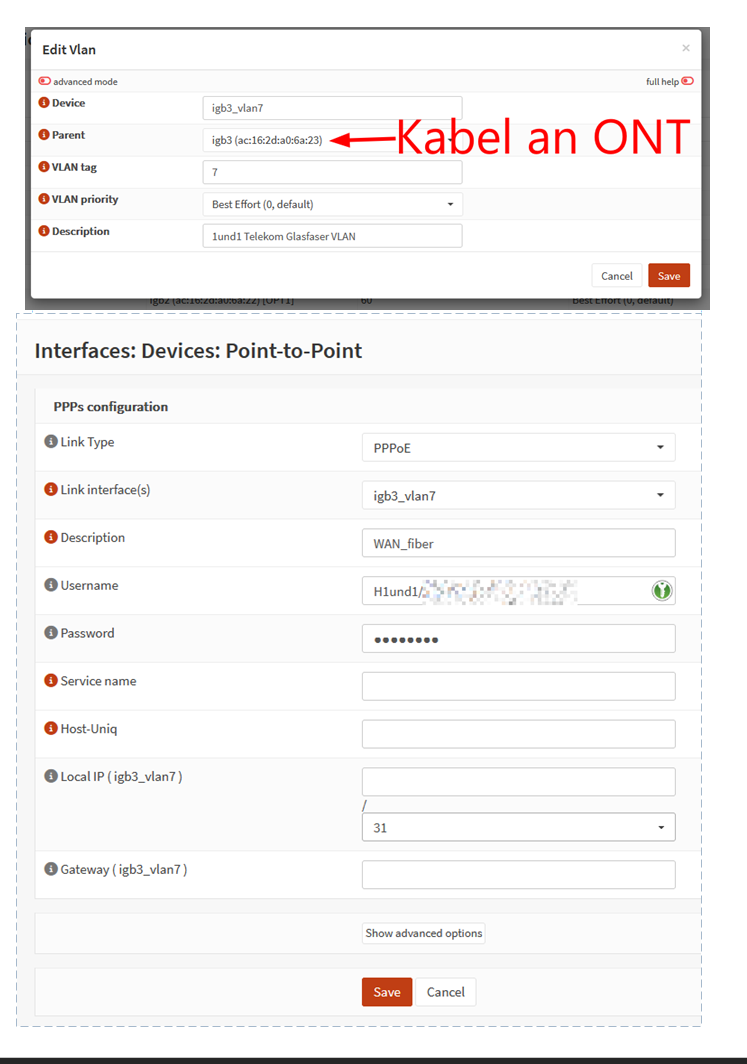 Das klappte sogar für meine pfsense, wenngleich ich natürlich etwas mehr Gehirnschmalz reinstecken musste, denn das Frontend der pfsense ist ja ein anders als das der OPNsense. Prinzipiell ist das richtig für alle DSL- und Glasfaser-Anschlüsse mit PPPoE in Deutschland, nur bei Internet über TV-Kabel passt es evtl. nicht so ganz.