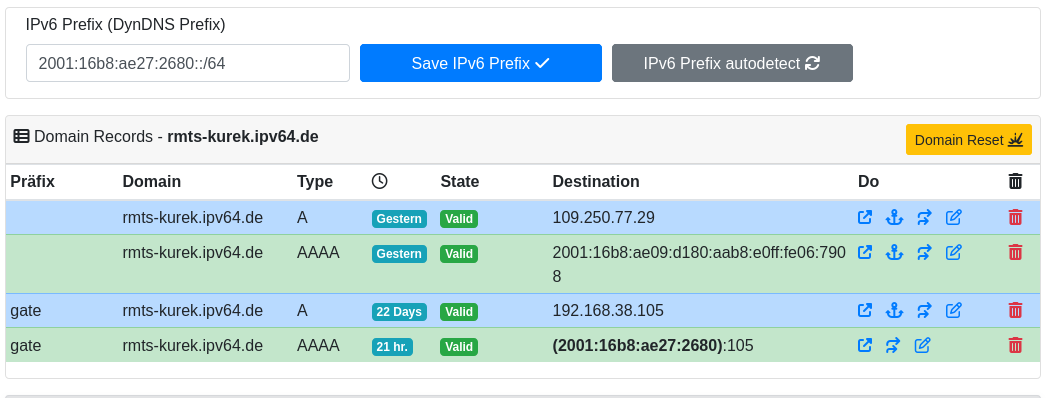 Ich hatte gestern abend noch alle DynDNS Clients gelöscht, falls ich hier Mist gebaut habe, und nur noch die IPv6 Domainupdater und den IPv6 Prefixupdater wieder neu angelegt.