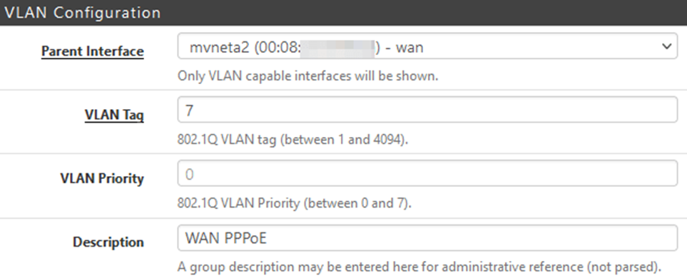 nach meinen Recherchen verwendet Netcologne VLAN 10, und ich habe bereits das Pfsense-VLAN-Tag auf 10 konfiguriert, damit es funktioniert.