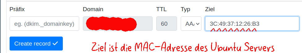Die MAC-Adresse des Ubuntu Servers findest du im Terminal des Server per