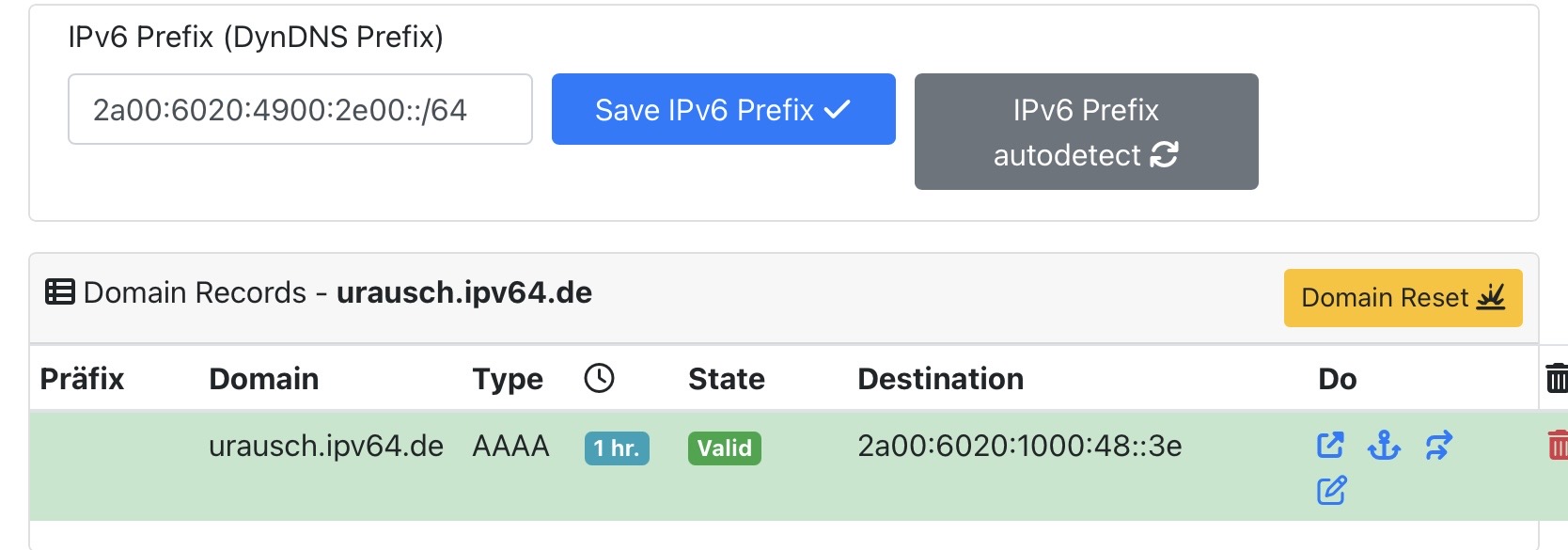 Unter den Erklärung zu den Domain Einstellungen bei IPv64 findest du zu den AAA-Records folgende Erläuterungen: