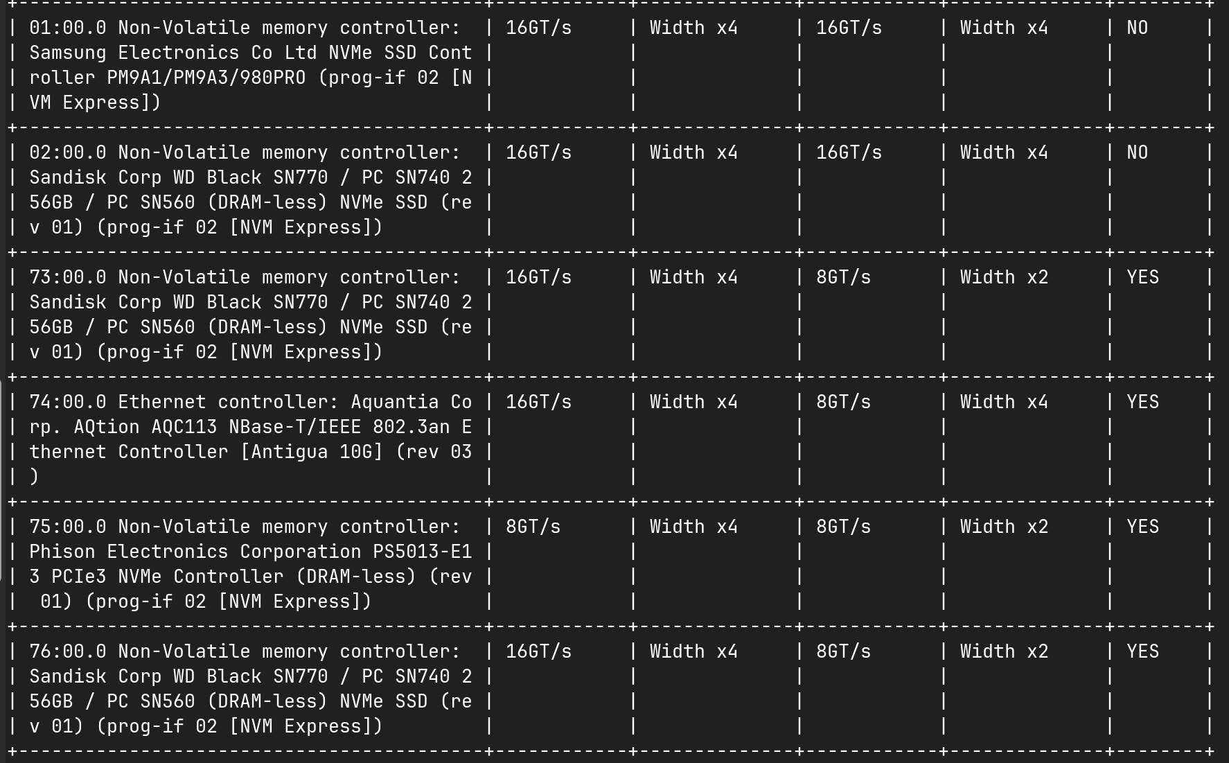 Was mir aufgefallen ist und ich mir noch nicht ganz erklären kann, ist ein Downgrade bei der Anbindung von zwei der vier SN850X m.2 SSDs.