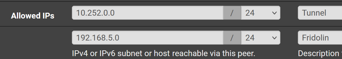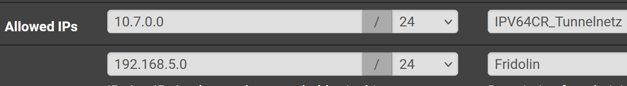 auf dem Server gibt es beim Interface keine Allowed IPs und die Peers haben als Allowed IPs nur ihre eigene Tunnel IP /32.