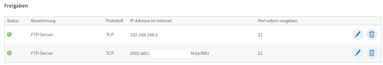 Beides. Bei IPv6 gibt’s per default kein NAT. Zudem ist das was du machen willst ohnehin hochriskant. FTP über Port 21 ist unsicher, da es Daten, einschließlich Benutzernamen und Passwörtern, im Klartext überträgt. Also lass es besser.
